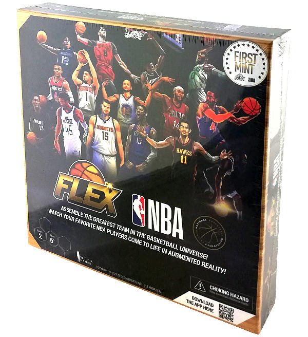 5 NBA Flexagons adicionais adicionados a esta caixa! O conjunto agora contém 10 Player Flexagons, 4 FX Tiles e 1 Full Court Game Board!