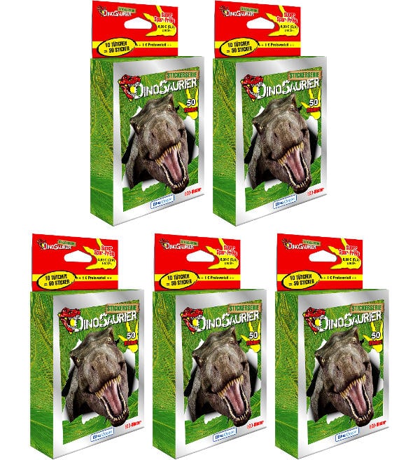 5 x Blister de um total de 50 saquetas (=250 cromos) da coleção de cromos "Blue Ocean Dinosaurier 2022".
