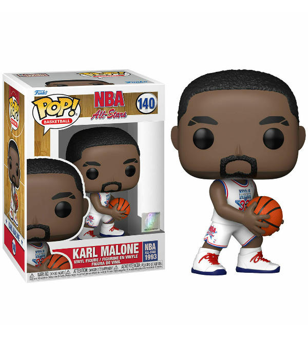 Funko POP! "Basketball 140 NBA - Karl Malone All Stars 1993". A figura de vinil tem aproximadamente 9 cm de altura e vem em uma caixa de janela.