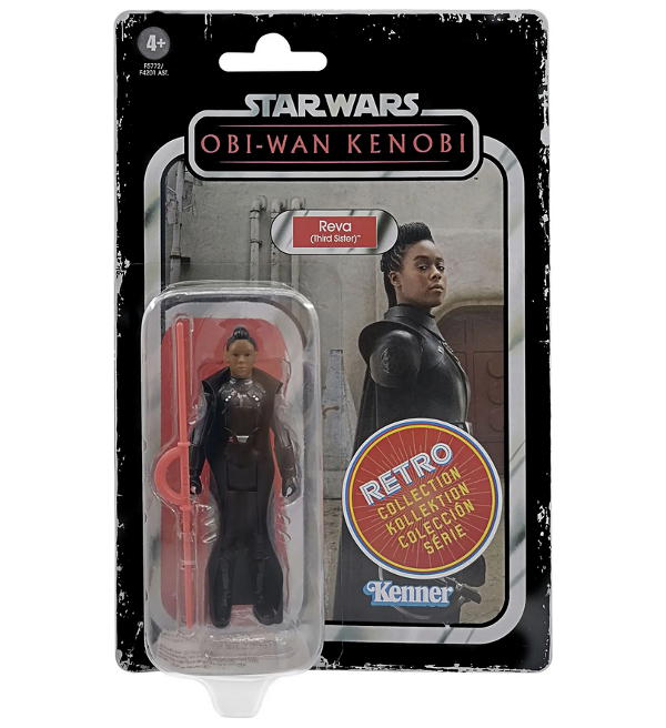 Figura de ação Kenner (Hasbro) "Star Wars Obi-Wan Kenobi - Reva (Third Sister) Retro". A figura tem aproximadamente 9,5 cm de altura.