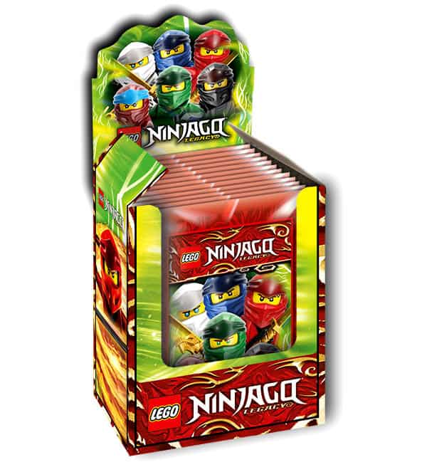 Caixa de 50 saquetas da coleção de cromos "Blue Ocean LEGO Ninjago Legacy Serie 2". Cada saqueta contém 5 cromos.