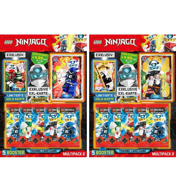 Ambos os Multipacks 2 diferentes da Lego Ninjago Series 5 com 10 saquetas (= 50 cards) mais esses cartões especiais: