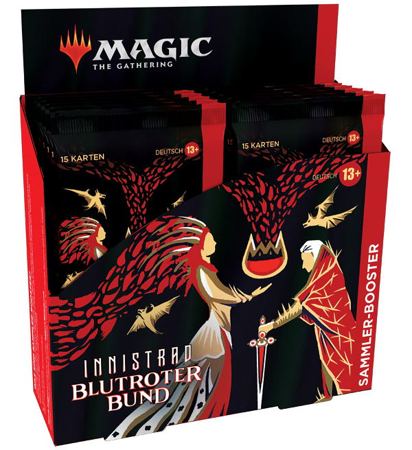 Sammler-Booster Caixa de 12 saquetas (Alemão) da coleção de "Magic: The Gathering Innistrad: Blutroter Bund" Trading Cards. Cada saqueta contém 16 cards.