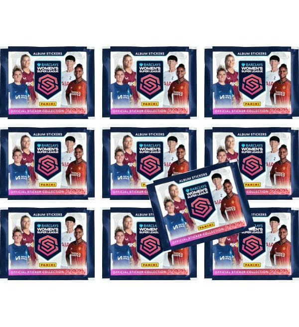10 saquetas da coleção de cromos "Panini Barclays Women’s Super League 2023/24". Cada saqueta contém 5 cromos.