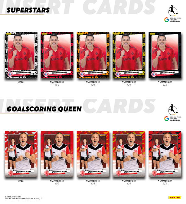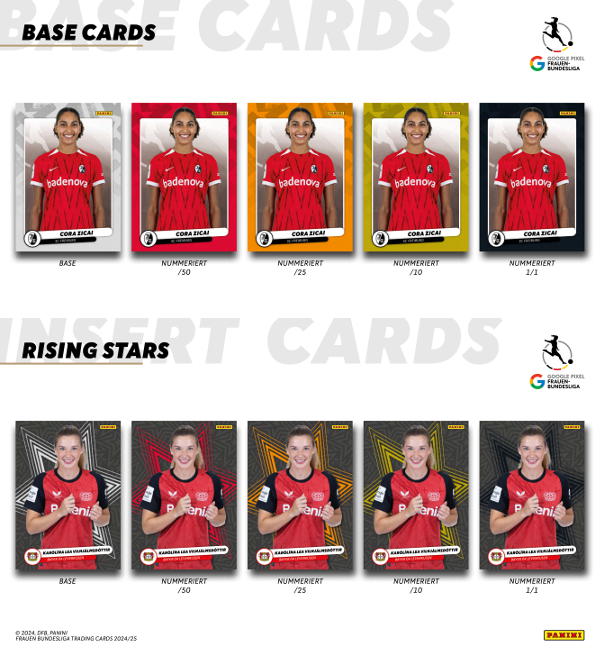 Premium Box de 10 saquetas da coleção de "Panini Bundesliga Feminina 2024-2025" Trading Cards. Cada saqueta contém 10 cards, o que perfaz um número total de 100 cards por caixa.