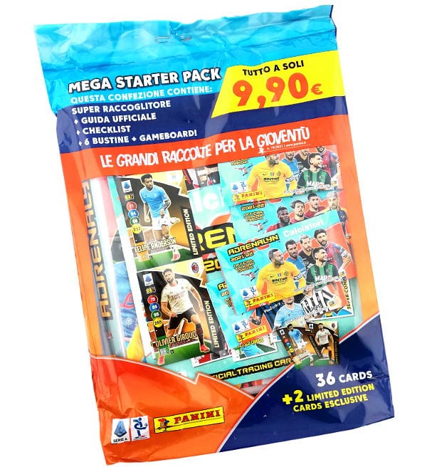 Mega Starter Pack da coleção de "Panini Calciatori Adrenalyn XL 2021-22" Trading Cards com o seguinte conteúdo: