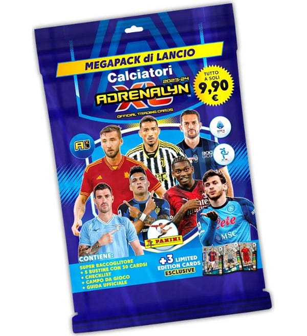 Starter Pack da coleção de "Panini Calciatori Adrenalyn XL 2023-24" Trading Cards com o seguinte conteúdo: