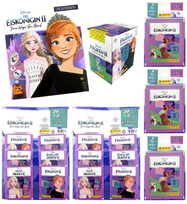 Mega-Bundle da coleção de cromos + cards Panini Disney Frozen 2 - Two Paths One Band (2021) com o seguinte conteúdo: