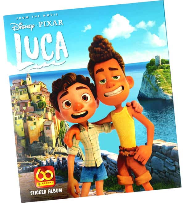 Álbum (Versão em inglês) da coleção de cromos Panini Disney Luca Movie.