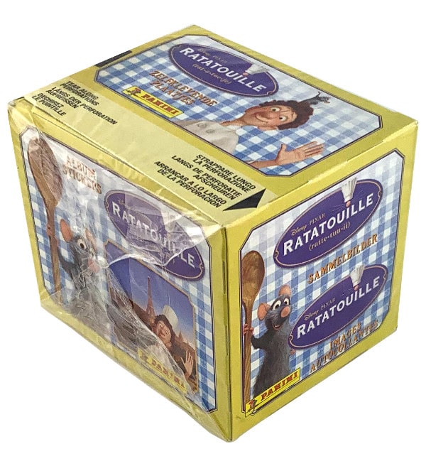 caixa de 50 saquetas da coleção de cromos "Panini Disney Ratatouille".