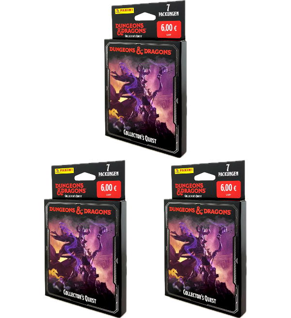 3 x Eco-Blister (=21 saquetas) da coleção de cromos & cards "Panini Dungeons & Dragons Collector's Quest". Cada saqueta contém 4 cromos + 1 Trading Card.