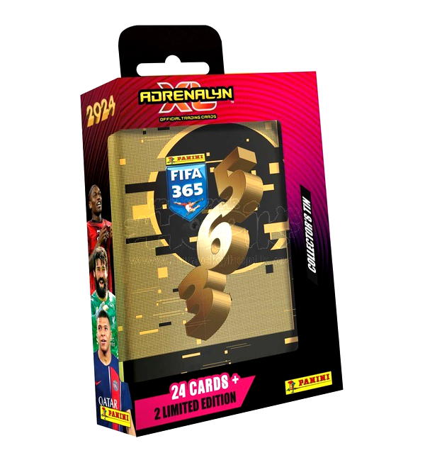 Pocket Tin* da coleção de "Panini FIFA 365 2024 Adrenalyn XL" Trading Cards com o seguinte conteúdo: