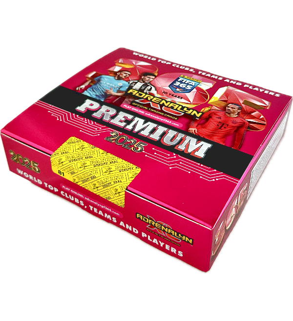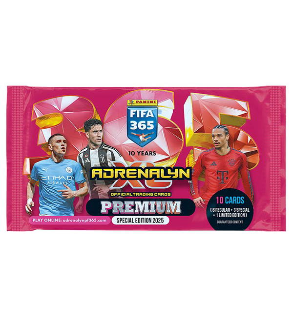 PREMIUM Caixa de 10 saquetas da coleção de "Panini FIFA 365 2025 Adrenalyn XL" Trading Cards. Cada saqueta PREMIUM contém: