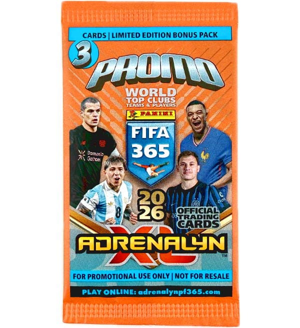 Calendário de advento (Surprise Box) da coleção de "Panini FIFA 365 2026 Adrenalyn XL" Trading Cards com o seguinte conteúdo: