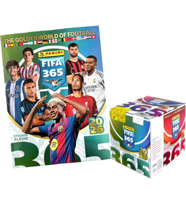 Álbum + 1 Caixa (=50 saquetas) da coleção de cromos "Panini FIFA 365 2026". Cada saqueta contém 5 cromos.