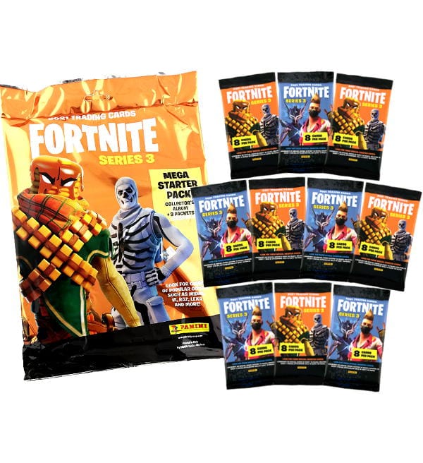 Starter Pack + 10 saquetas para a coleção de Panini Fortnite Series 3 Trading Cards.