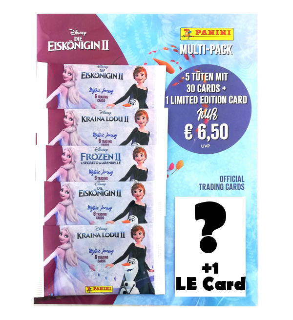 Multipack da coleção Panini Disney Frozen 2 - Mythic Journey Trading Cards (2021) com o seguinte conteúdo: