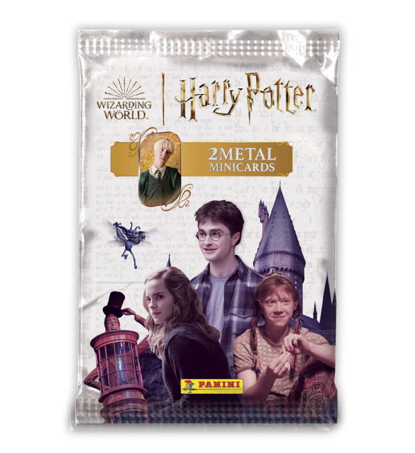 Caixa de 25 Saquetas (=50 Cards) da coleção "Panini Harry Potter Metal Minicards" Trading Cards.