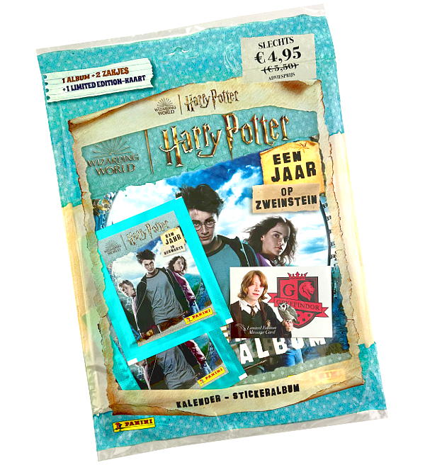 Starterset (versão holandesa) para a coleção de cromos & cards "Panini Harry Potter A Year at Hogwarts" com 2 saquets + 1 Limited Edition Card.