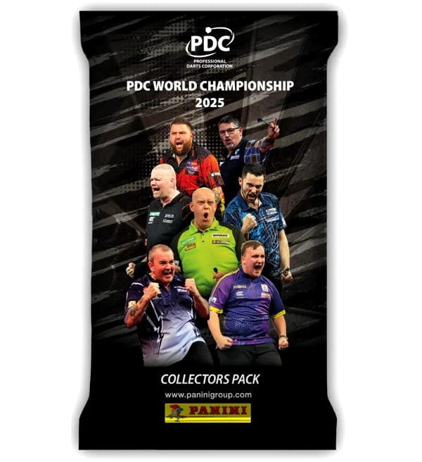 Collectors Pack de 12 cards da coleção de "Panini PDC World Championship 2025" Trading Cards.
