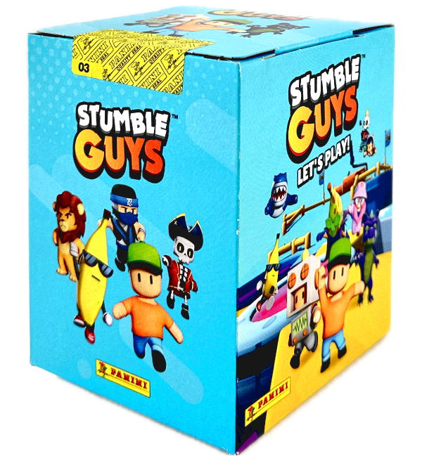 Caixa de 36 saquetas da coleção de cromos "Panini Stumble Guys Let's Play". Cada saqueta contém 5 cromos.