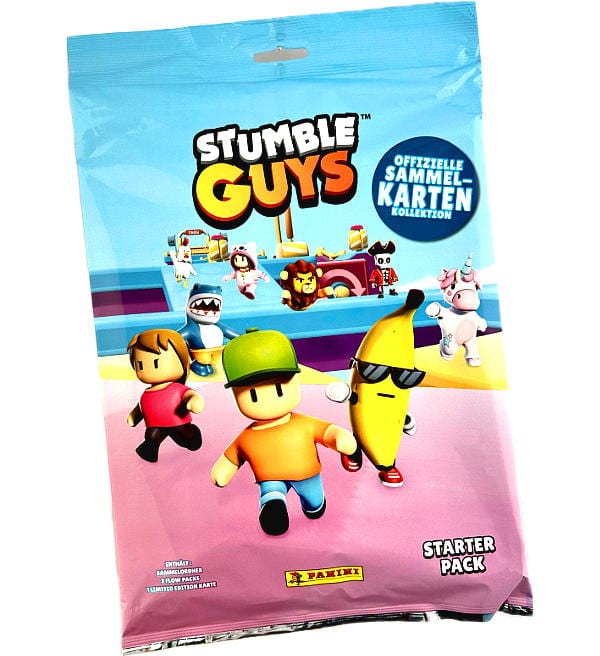 Starter Pack da coleção de "Panini Stumble Guys" Trading Cards com o seguinte conteúdo: