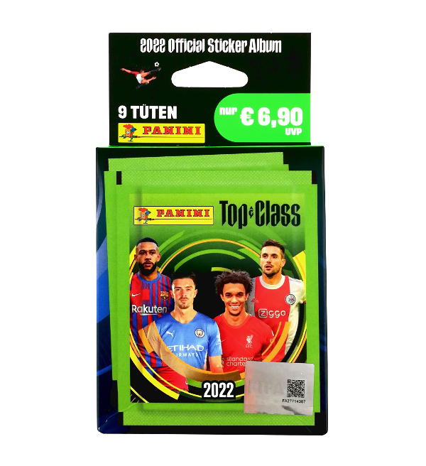Eco-Blister de 9 saquetas (=45 cromos) da coleção de cromos Panini Top Class 2022.