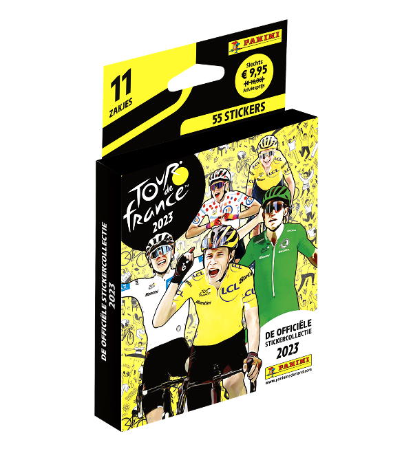 Eco-Blister de 11 saquetas da coleção de cromos "Panini Tour de France 2023". Cada saqueta contém 5 cromos.