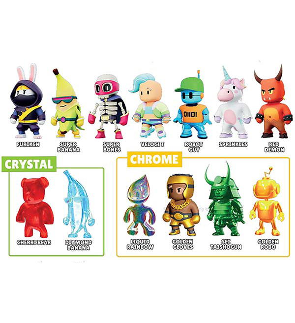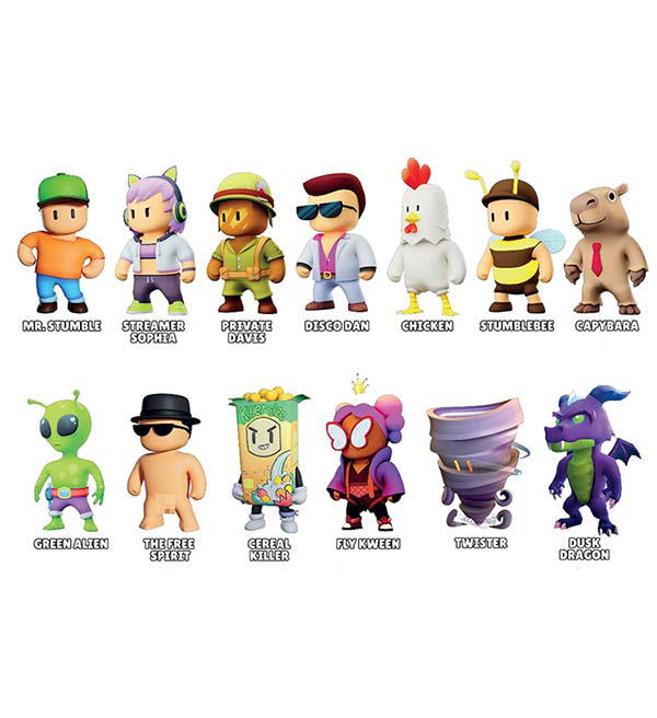 Caixa da coleção "Stumble Guys Series 2 - 3D Mini Figures" com o seguinte conteúdo: