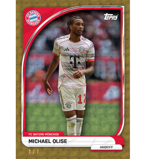 "Topps Bayern München 2025/26" Collector Tin com o seguinte conteúdo: