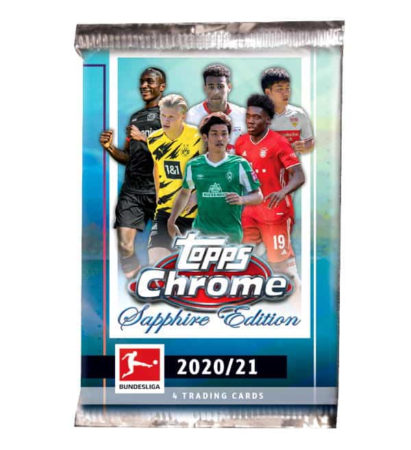 "Topps Bundesliga CHROME Sapphire Edition 2020/21" Hobby Box (lacrado) com o seguinte conteúdo: