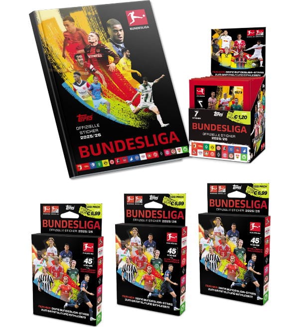 Mega-Bundle "HARDCOVER" para a coleção de cromos Topps Bundesliga 2025/2026 com o seguinte conteúdo: