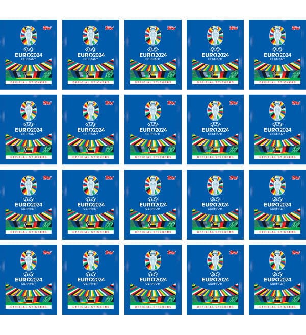 20 saquetas da coleção de cromos "Topps EURO 2024". Cada saqueta contém 6 sticker.