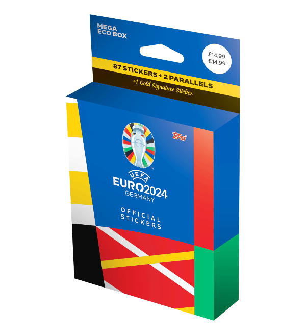 Mega Eco Box da coleção de cromos "Topps EURO 2024" com o seguinte conteúdo: