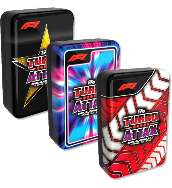 Mega-Tin Set com as três versões "Future Legends", "Super Elite" e "Hall of Fame" da colecção "Topps Formula 1 Turbo Attax 2022" Trading Cards com o seguinte conteúdo: