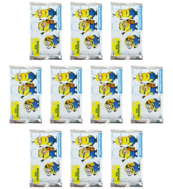 10 pacotes, cada um contendo 8 cartas do Topps Minions Trading Card Game.