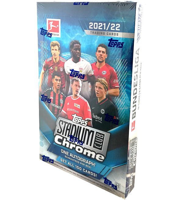 "Topps Stadium Club Chrome Bundesliga 2021/22" Hobby Box (lacrado) com o seguinte conteúdo: