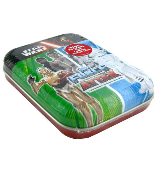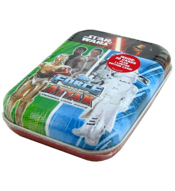 Mini-Tin "V1" da série Topps Star Wars Force Attax Ep. 7 com 30 cartas de troca + 1 carta de edição limitada.