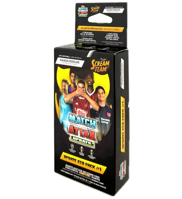 Update Eco Pack 1 "Scream Team" da coleção "Topps UCC Champions League Match Attax 2025/26" Trading Cards com o seguinte conteúdo: