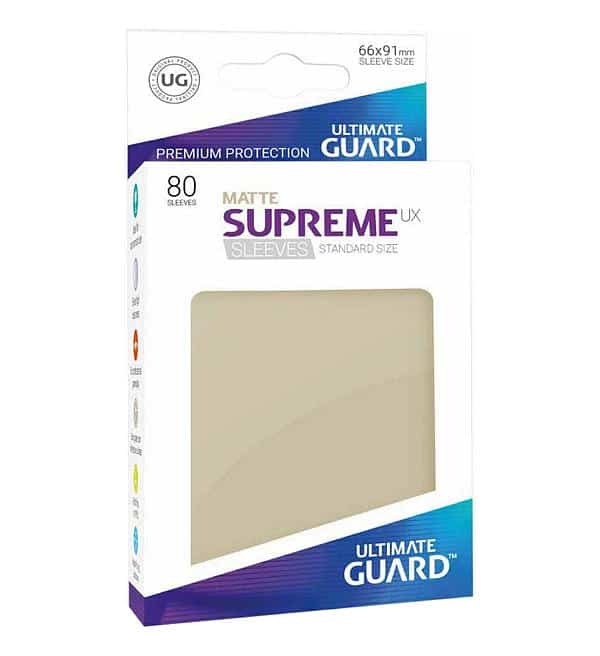 80 "UG Supreme UX Sleeves - Standard fosca areia" para proteger seus cartões.