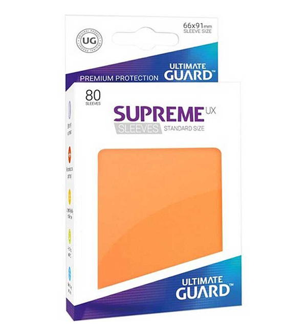 80 "UG Supreme UX Sleeves - Standard laranja" para proteger seus cartões.