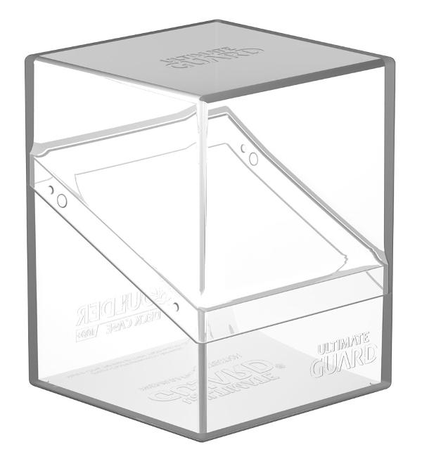 Caixa de cartão sólida prática e compacta com uma superfície agradável ao toque e fácil de abrir. Ele pode conter até 100 cartões de manga dupla.