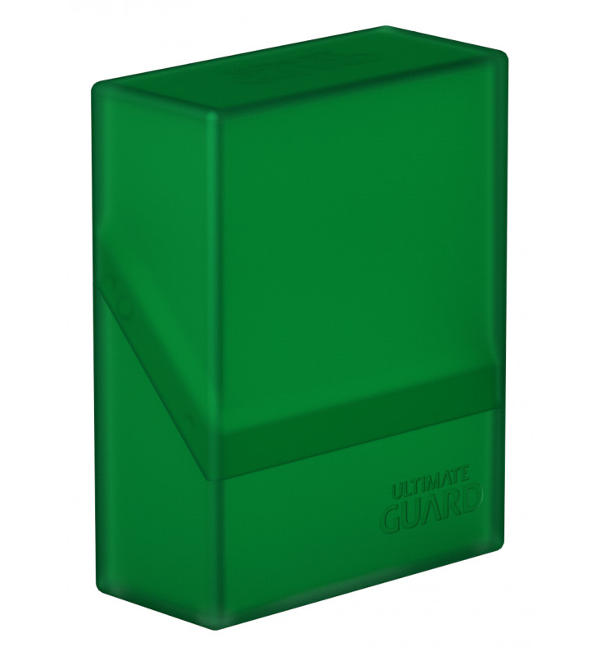 Caixa de cartão sólida prática e compacta com uma superfície agradável ao toque e fácil de abrir. Ele pode conter até 40 cartões de manga dupla.