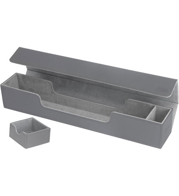 Estojo de transporte e armazenamento Premium Play-Mat com material de capa XenoSkin, fecho magnético e bandeja removível para acessórios. A casa de luxo para o seu Play-Mat mede aprox. 40,5 x 7 x 7,8 cm e é ideal para alojar todos os tapetes de tamanho padrão, por ex. todos os tapetes de jogo Ultimate Guard com o tamanho de 61 x 35 cm.