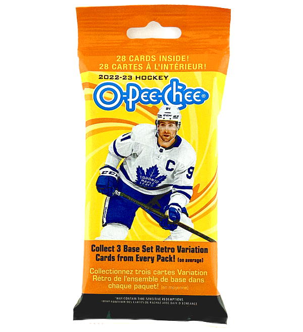Fat Pack de 28 cards da coleção de "Upper Deck NHL 2022-23 Hockey - O-Pee-Chee" Trading Cards.